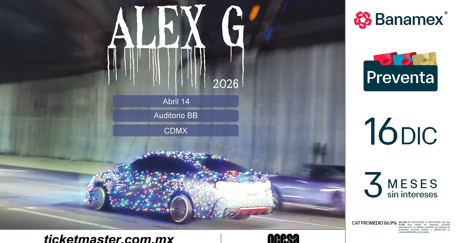 Hoy, Alex G anuncia una nueva serie de fechas como artista principal en Norteamérica para el próximo año. Comenzando el 14 de abril en Ciudad de México, la gira lo llevará a presentarse dos noches en Portland y Seattle, además de paradas adicionales en Sacramento, San José, Boise, Salt Lake City y Las Vegas. Todas las fechas de la gira se pueden consultar a continuación.