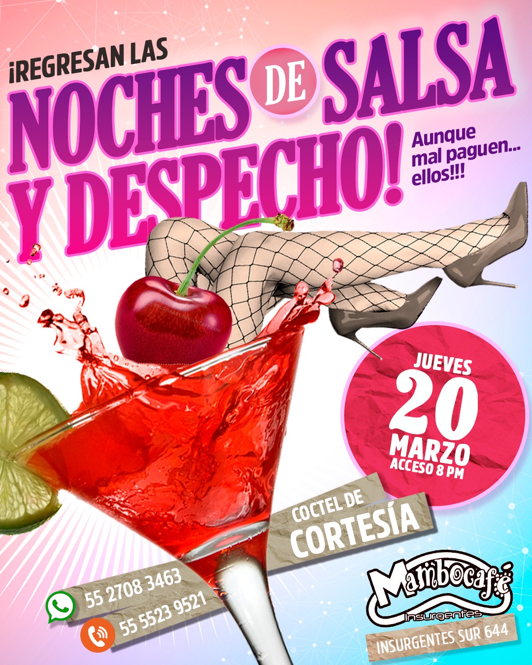 El jueves 20 de marzo, el Mambo Café Insurgentes será el escenario perfecto para que todas las mujeres que han pasado por un desamor se reencuentren con su mejor versión. Porque, al final del día, el mejor desquite es vivir feliz y demostrar que, aunque mal paguen ellos, nosotras siempre salimos ganando. Envía un WhatsApp al 5527083463 y asegura tu lugar.