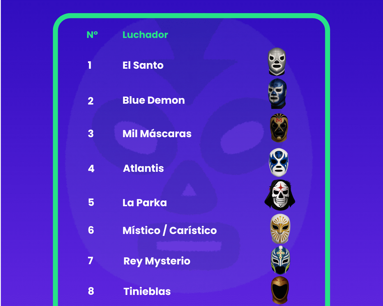 Es posible descubrir aquí la lista completa de las Top 20 máscaras más legendarias de la lucha libre mexicana.