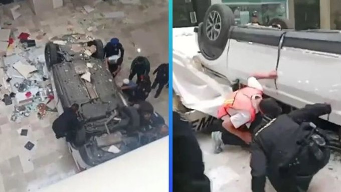Hasta el momento, no se reportan más personas lesionadas, sin embargo, las imágenes muestran que el auto cayó desde el segundo piso de la Plaza Lilas, dentro de la misma plaza, sobre un quiosco que aún no habría abierto al público.