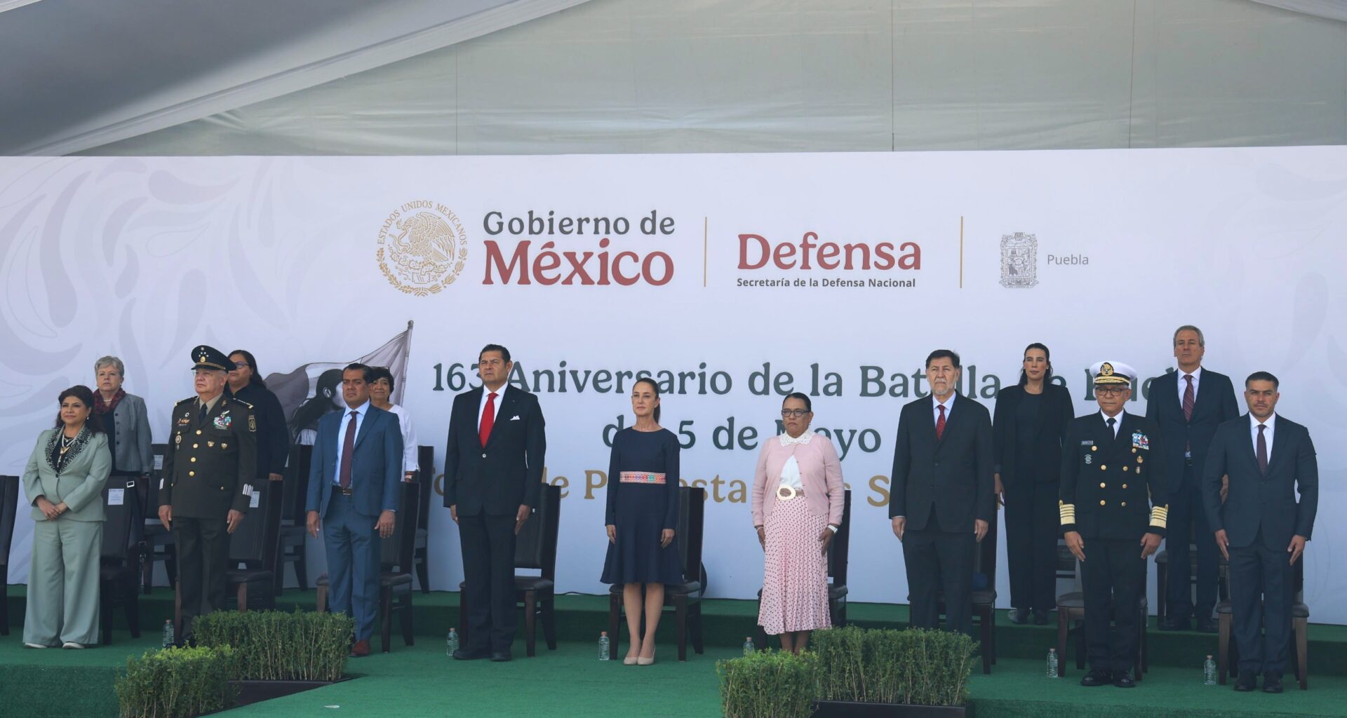 Brugada acompañó a la presidenta Claudia Sheinbaum durante la ceremonia oficial por el 163 aniversario de la Batalla de Puebla, realizada en el Mausoleo de Ignacio Zaragoza, en la capital poblana.