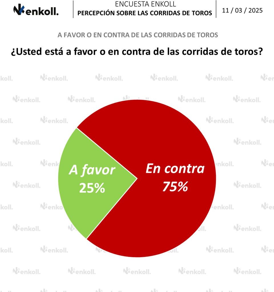 Una reciente encuesta realizada por Enkoll ha revelado un marcado rechazo hacia las corridas de toros entre los habitantes de la Ciudad de México. Según el estudio, el 75% de los capitalinos se opone a esta práctica taurina, mientras que solo un 25% la apoya.