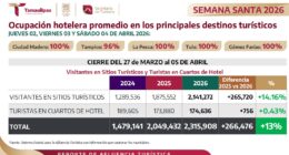 ESTADOS Registra Tamaulipas 100% de ocupación hotelera y se posiciona como uno de los mejores destinos a nivel nacional Supera en más de 250 mil visitantes la cifra del año… NotiCDMXabril 8, 2026