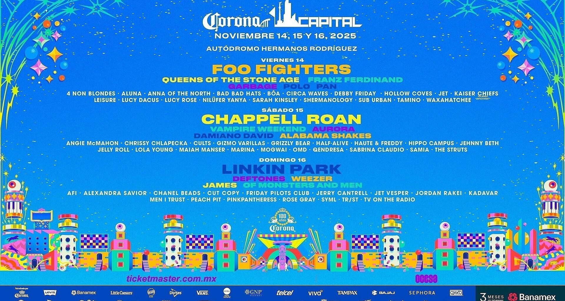 Corona Capital es el festival anual de música internacional más importante de México organizado por OCESA en la Curva 4 del Autódromo Hermanos Rodríguez de la CDMX desde 2010. Además de la música, el festival destaca por su enfoque en la sostenibilidad, contando con la certificación internacional ISO 20121, además, año con año promueve la inclusión y accesibilidad, ofreciendo servicios para personas con discapacidad auditiva o movilidad reducida. Billie Eilish, The Strokes, Arctic Monkeys, My Chemical Romance y Paul McCartney son algunos de los artistas que han encabezado sus ediciones anteriores y este 2025 promete entregar una edición inolvidable de la mano de headliners como Foo Fighters, Chappell Roan y Linkin Park.