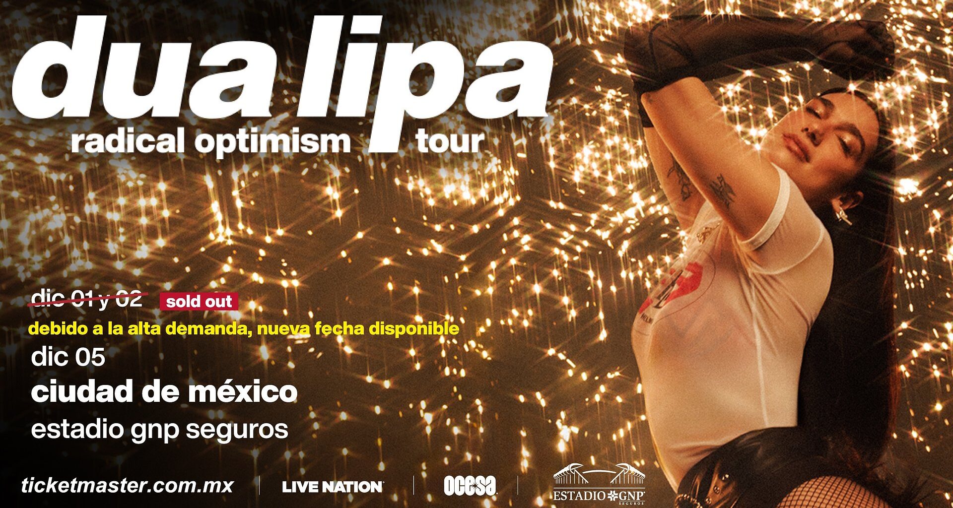 Debido a la abrumadora demanda, Dua Lipa, la superestrella del pop global ganadora de tres premios GRAMMY siete BRIT Awards, anunció hoy una fecha adicional en México para la esperada etapa latinoamericana de su gira mundial Radical Optimism Tour, que contará con presentaciones en estadios de Argentina, Chile, Brasil, Perú, Colombia y México este otoño. El nuevo concierto tendrá lugar el 5 de diciembre en el Estadio GNP Seguros.