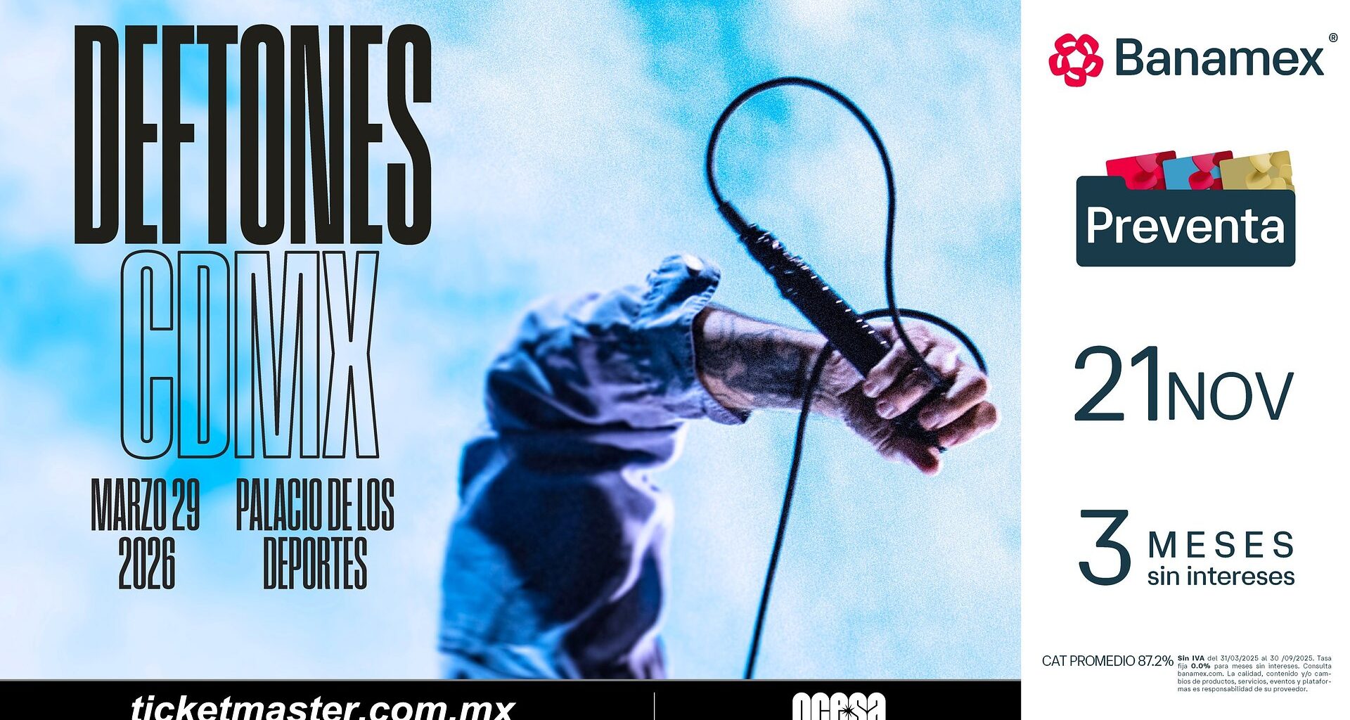 La banda de Sacramento, ganadora del premio GRAMMY® y con múltiples discos de platino, Deftones, confirma su presentación estelar en el Palacio de los Deportes el 29 de marzo de 2026. Siendo una de las bandas más influyentes del rock alternativo,
