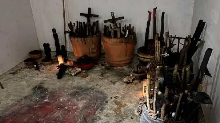 Un altar con cráneos, restos humanos y huellas hemáticas fue encontrado por personal de la Fiscalía Anticorrupción de Morelos al realizar un cateo en el domicilio del exdirector del Fideicomiso Lago Tequesquitengo, Dionicio Emanuel Álvarez Anonales, a quien se le giró una orden de aprehensión por presuntos hechos de corrupción.