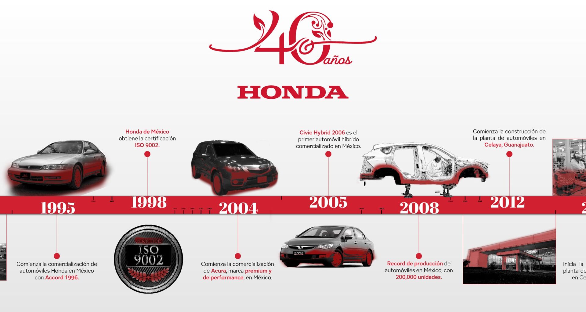 Honda de México (HDM) está celebrando su 40 aniversario en México. Desde que comenzó operaciones en México, el 10 de septiembre de 1985, Honda ha sido un motor de progreso para la industria y un pilar importante en la economía nacional, consolidando su compromiso a través de dos instalaciones de manufactura, una en El Salto, Jalisco, y la otra en Celaya, Guanajuato, que en conjunto emplean a más de 6,600 asociados.
