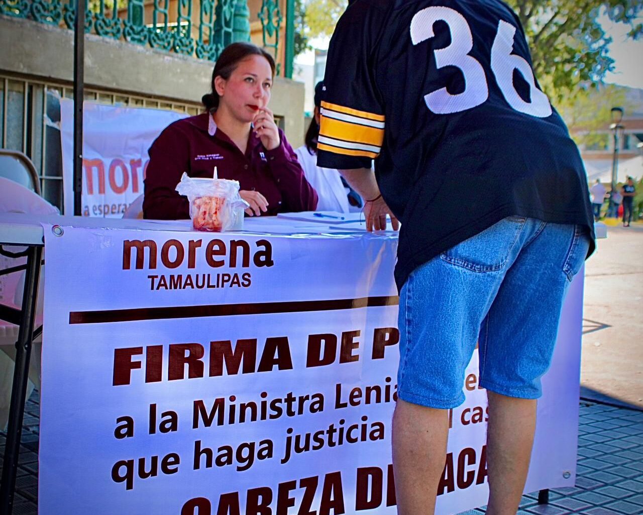 Morena Tamaulipas informó que las firmas recabadas serán entregadas a la Ministra Lenia Batres Guadarrama, acompañadas de un oficio donde se documentan los antecedentes del caso y se solicita un análisis exhaustivo que permita resolver con imparcialidad y en favor del Estado de derecho.