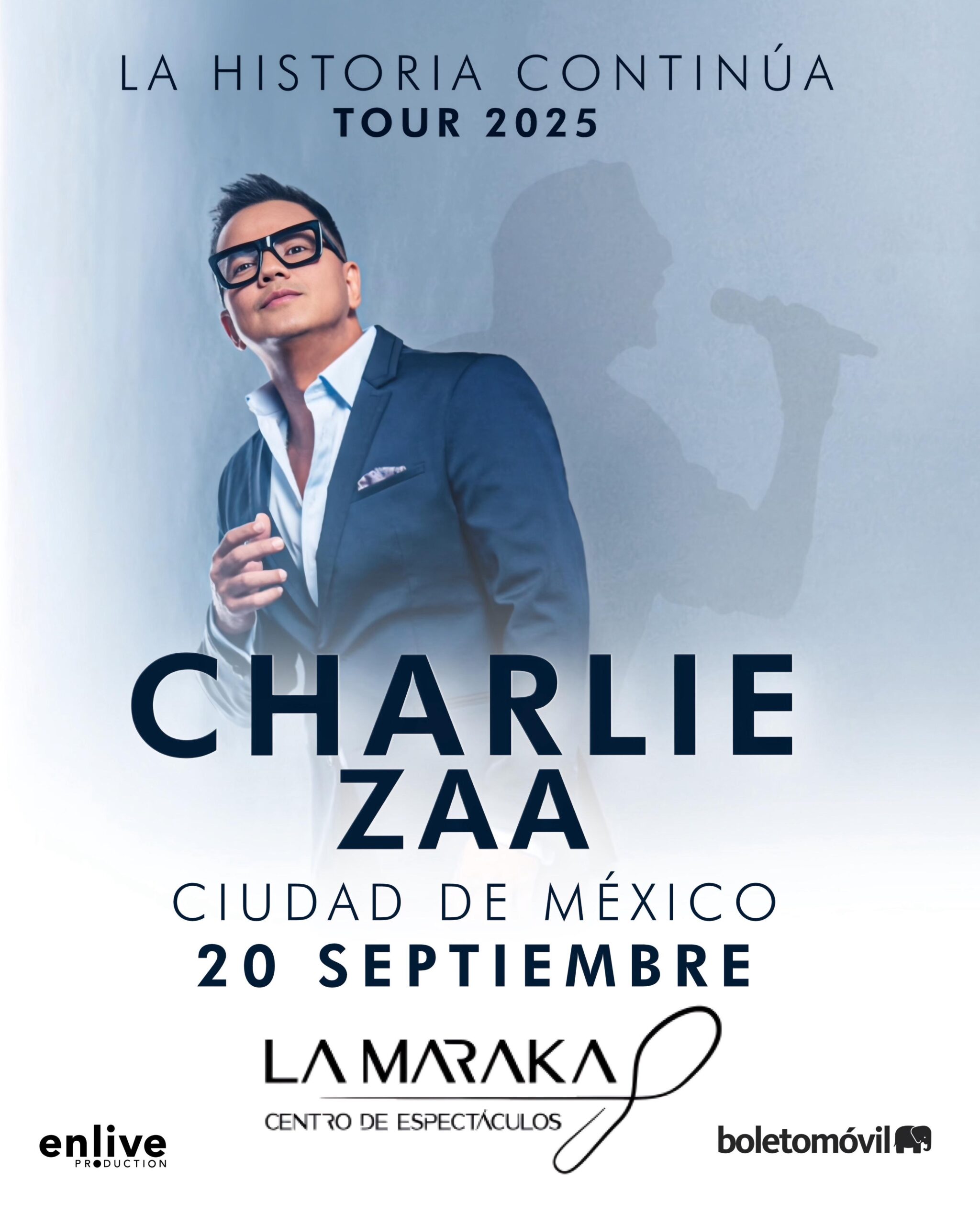 En una época donde la fugacidad parece reinar, Charlie Zaa se alza como un faro de permanencia, evocando el poder sanador de las canciones que no pasan de moda porque nacen del alma. Este 20 de septiembre, su voz volverá a acariciar corazones mexicanos, recordándonos que, en efecto, la historia continúa. Charlie Zaa se presenta el próximo sábado 20 de septiembre de 2025 en el Centro de Espectáculos La Maraka a partir de las 9 de la noche. Las entradas pueden adquirirse en la boletera Boletomovil y en taquillas del inmueble.
