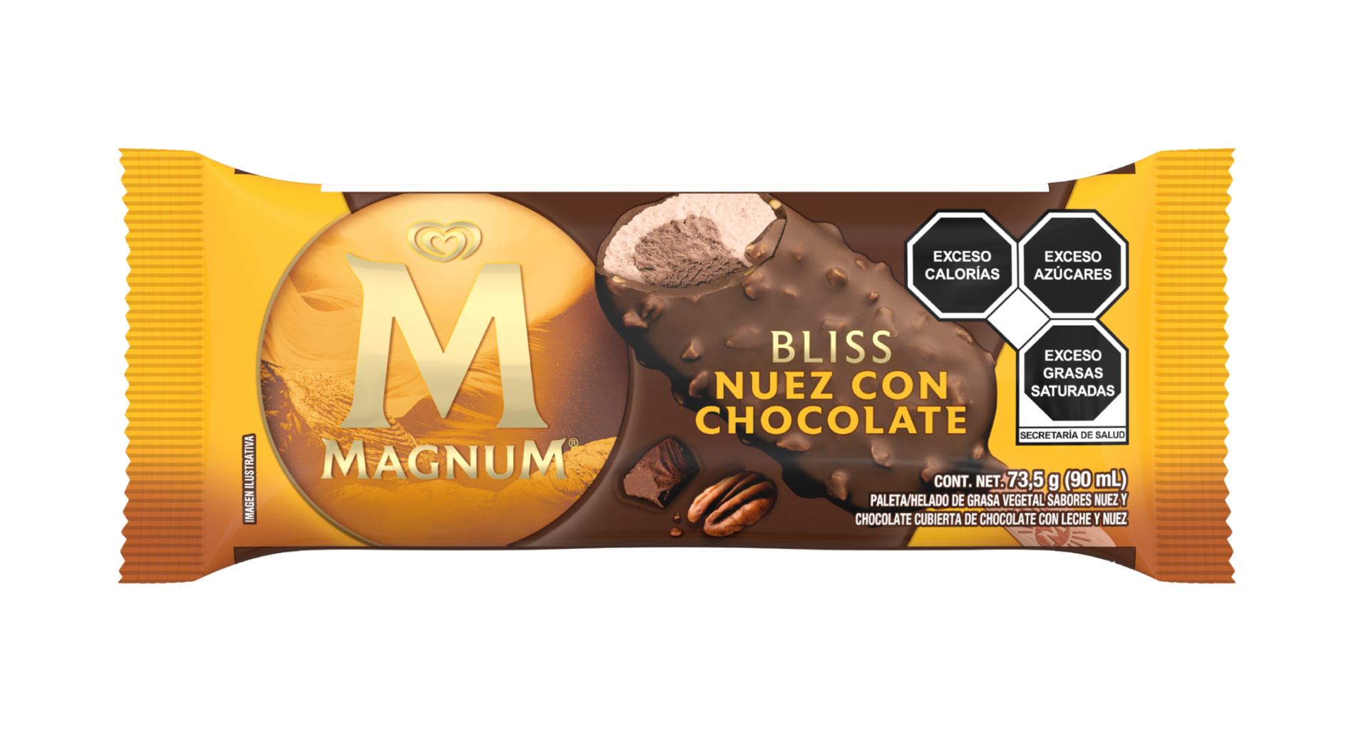 La marca incorpora la nuez como protagonista de una innovación. Inspirada en el gusto de aquellos que buscan el placer y que posicionan a la nuez entre sus sabores favoritos y al chocolate como uno de los más amados, MAGNUM® BLISS construye un equilibrio impecable: un suave centro de helado de chocolate, rodeado por un cremoso helado de nuez; cubierto por la inconfundible capa crujiente de chocolate clásico MAGNUM® con trocitos de nuez que se perciben en cada mordida.