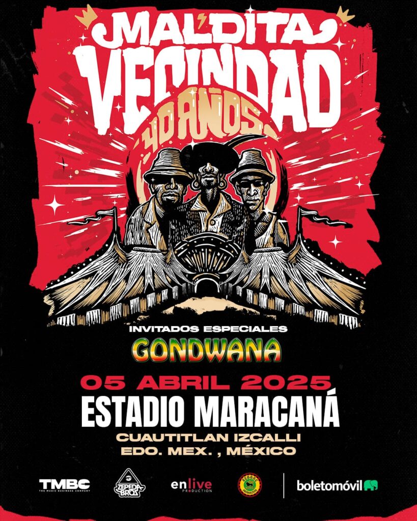 La legendaria banda mexicana Maldita Vecindad y los Hijos del Quinto Patio anunció dos presentaciones imperdibles en el Estado de México, como parte de su gira de celebración por más de tres décadas de trayectoria musical. Los conciertos tendrán lugar en dos emblemáticos recintos: el Estadio Maracaná de Cuautitlán el próximo 5 de abril y el Teatro Morelos de Toluca el 2 de mayo. Venta de boletos a través del Sistema Boletomovil.