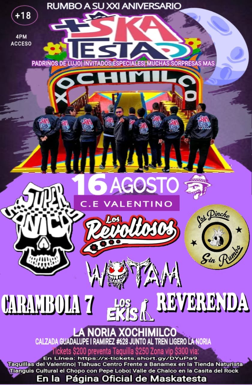 El escenario elegido para esta reunión es el Centro de Espectáculos Valentinos este Sábado 16 de Agosto, ubicado en la Noria, Xochimilco, justo en la parada del Tren Ligero La Noria. Un punto emblemático que, más allá de su localización privilegiada, se ha convertido en epicentro de conciertos donde la cercanía con el público es parte esencial de la experiencia. Allí, entre luces, sudor, metales y coros multitudinarios, se vivirá un ritual que solo el ska sabe construir: el de la comunión entre músicos y audiencia, donde la música no se limita a escucharse, sino que se comparte, se baila y se grita hasta quedarse sin voz.