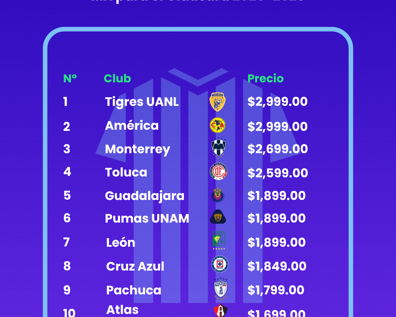 BonusFinder México recopiló los precios directamente de las tiendas oficiales de cada club, y los ordenó en un ranking que muestra las diferencias significativas entre equipos. Aquí está la tabla completa,