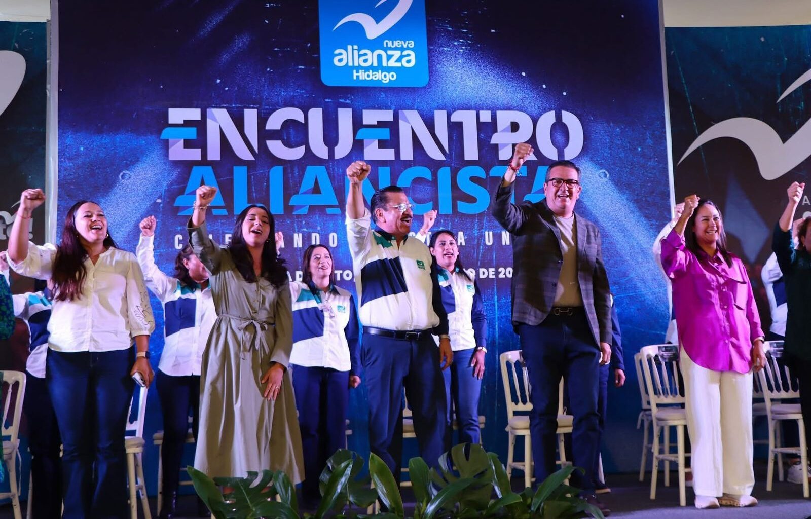 Con porras, banderas y un ambiente de camaradería política, militantes de Nueva Alianza Hidalgo se reunieron en Zempoala para enviar un mensaje claro: están listos para los próximos retos electorales y van por más. Al centro del templete, el alcalde Francisco Sinuhé Ramírez Oviedo y el dirigente estatal Sergio Hernández Hernández encabezaron el encuentro como líderes visibles de una organización que ya se asume consolidada.