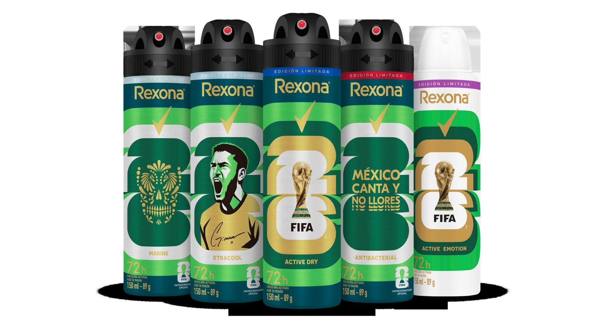 Para los mexicanos, el fútbol es un ritual cultural lleno de emociones, tradiciones y símbolos que forman parte de nuestra identidad. Es aquí donde Rexona se inspira en la forma única en la que los mexicanos vivimos el fútbol y presenta su colección de cuatro latas edición limitada, cada una con un diseño único que refleja los símbolos más icónicos del torneo mundialista.