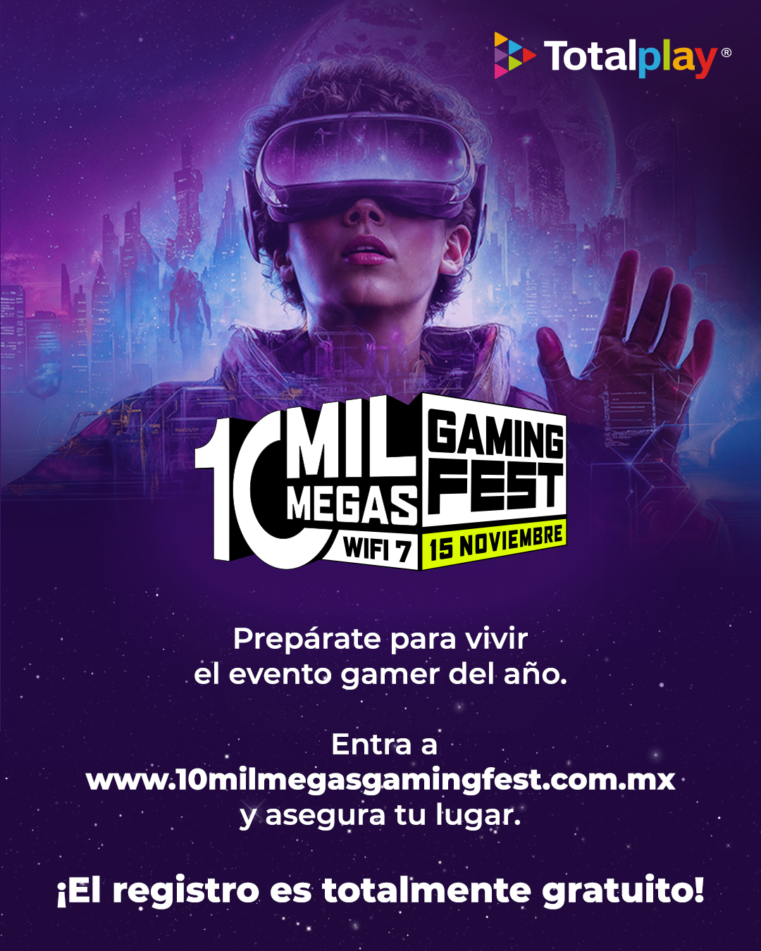 El “10 Mil Megas Gaming Fest” no es solo un evento: es una revolución de fibra óptica, un punto de encuentro donde la tecnología y la imaginación se funden en un mismo pulso. Totalplay lo ha concebido como una experiencia inmersiva que celebra la energía, el talento y la comunidad que definen al universo gamer mexicano. Y con la fuerza de sus 10,000 megas, promete abrir las puertas hacia una nueva era en la que el futuro se juega, se comparte y se vive a la velocidad de la luz.